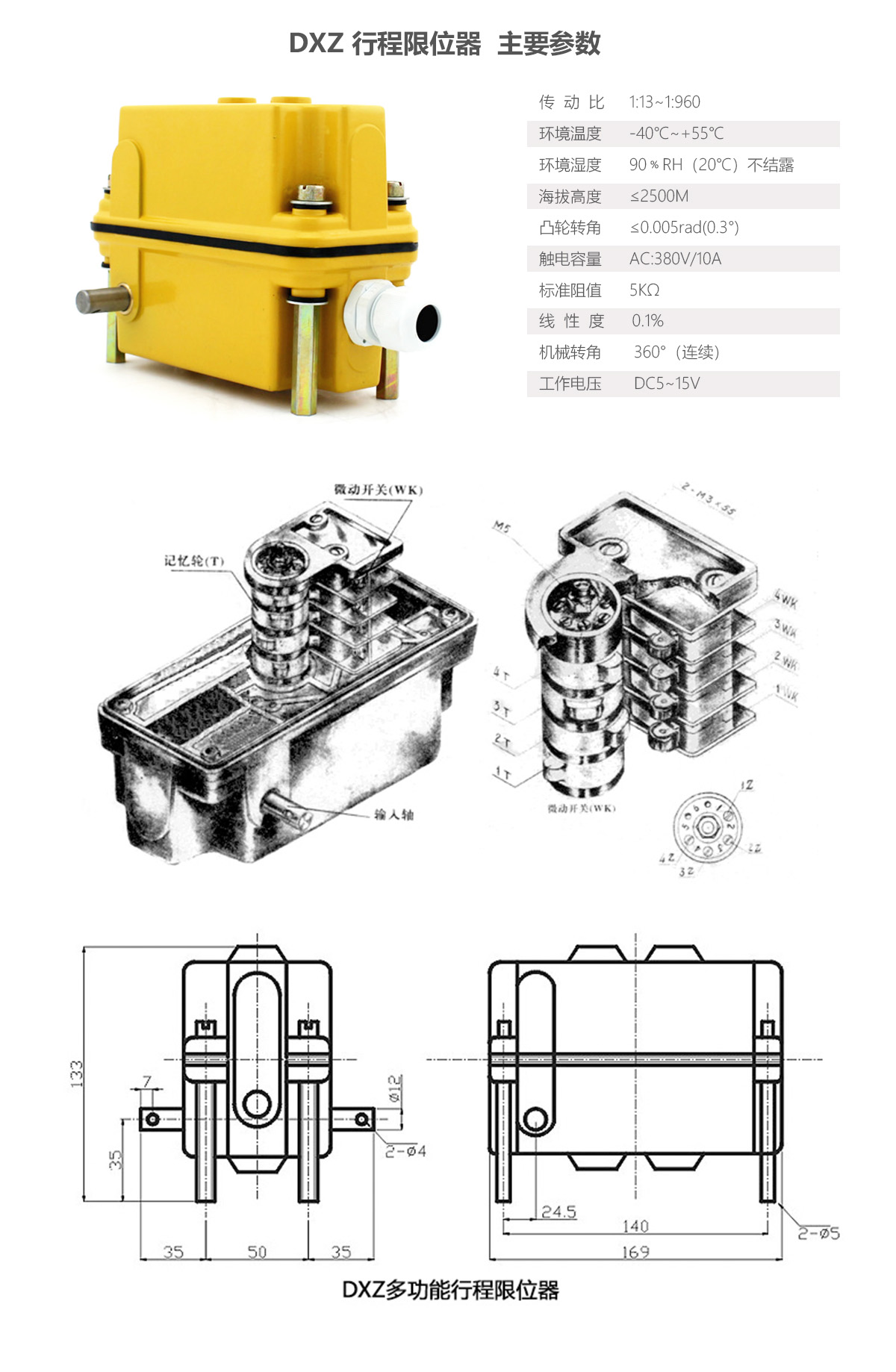 DXZ多功能行程限位器可廣泛應(yīng)用于建筑、港口、礦山等行業(yè)的起重、傳輸機(jī)械的空間三坐標(biāo)的控制和限位。